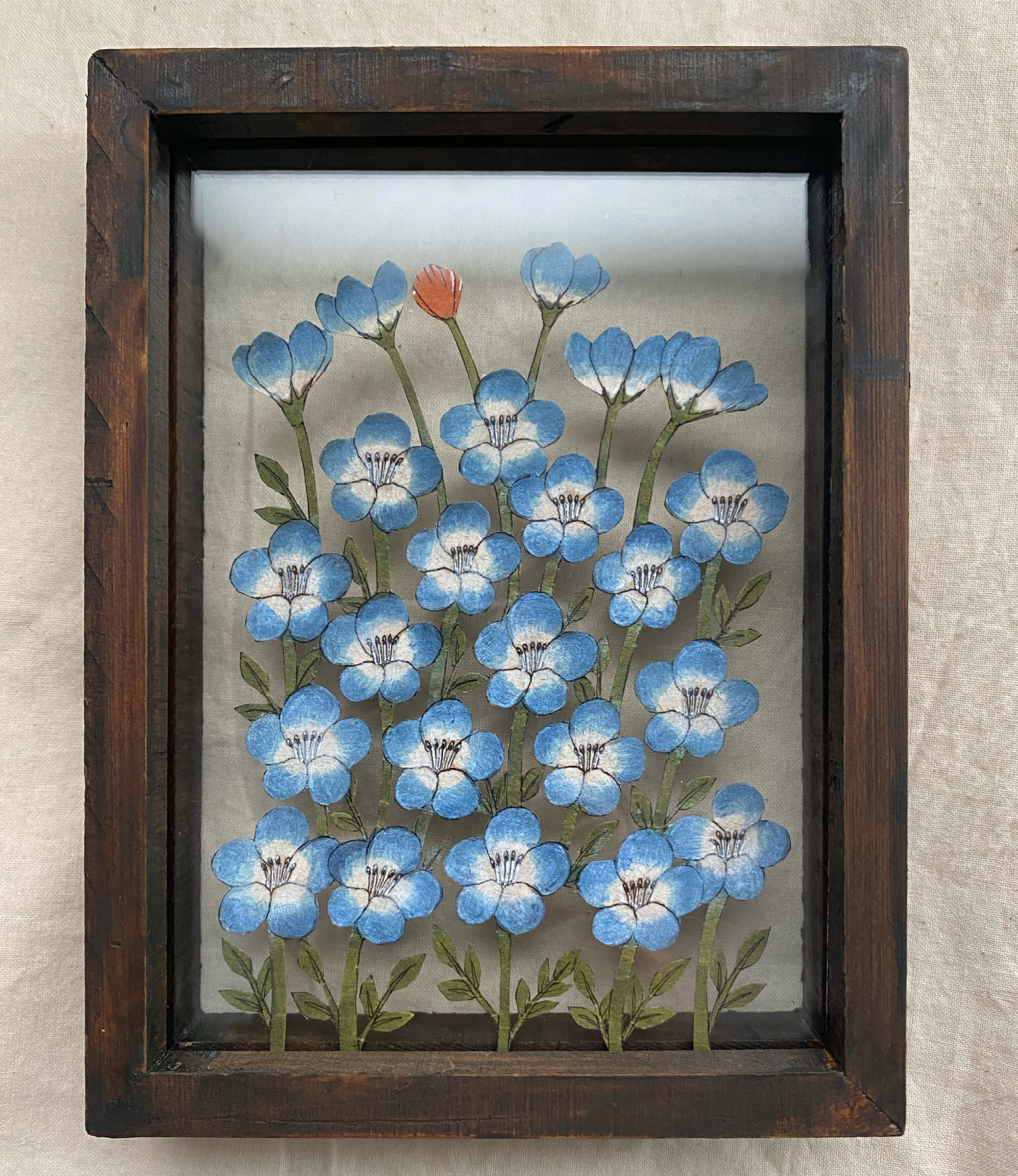 紙の花屋 「 ネモフィラと一輪のヒナゲシ 」ウッドフレーム