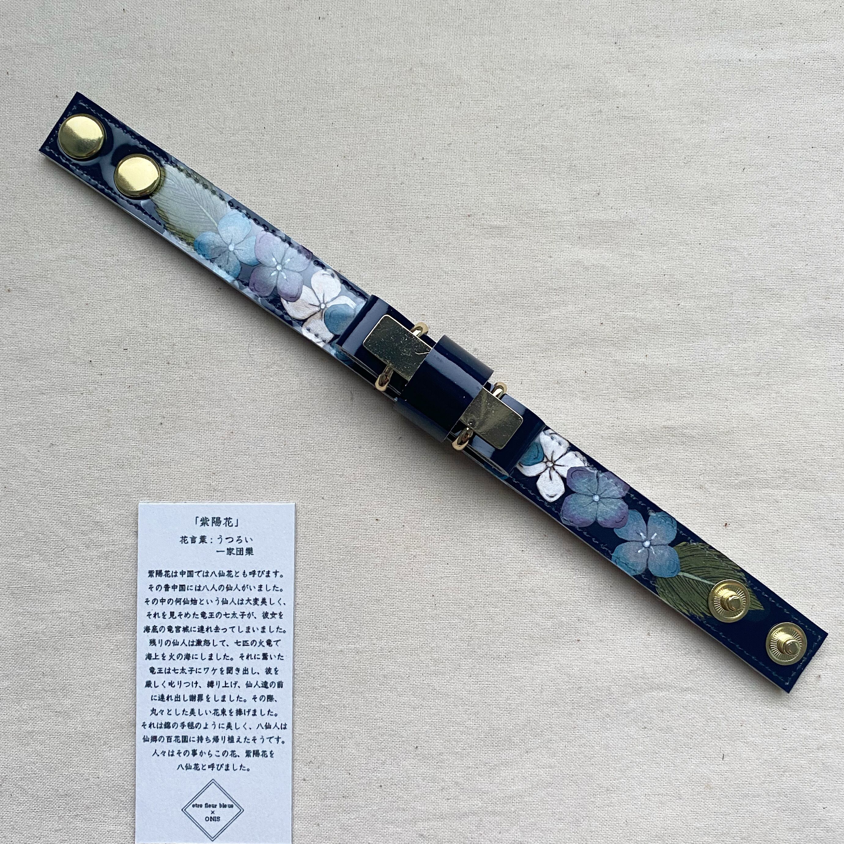 紫陽花のリボンレザーブレス by 紙の花屋×ONIS